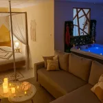 Détendez-vous dans le jacuzzi privatif ou profitez de la barre de pôle dance pour une touche ludique. La luminothérapie et le ciel étoilé, accompagnés de sons apaisants, créent une atmosphère magique.