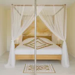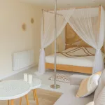 Bienvenue dans le gîte Agathe, un gîte d’exception pouvant accueillir jusqu’à 6 personnes, avec un lit à baldaquin (160×200) dans la chambre principale, deux lits simples dans une seconde chambre, et un canapé-lit (140×190) dans l’espace salon.